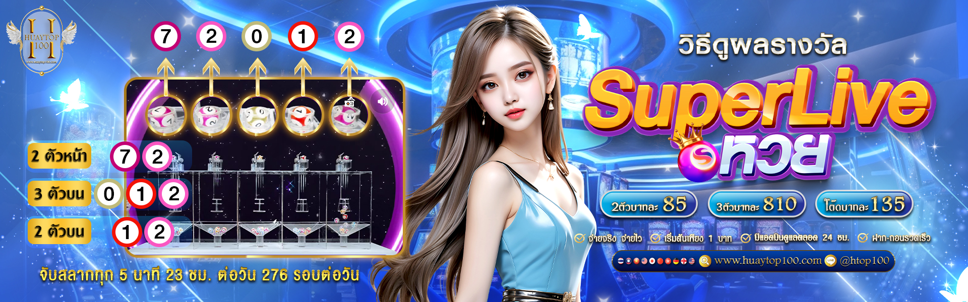 HUAYTOP100 ได้มีการจัดเตรียม ระบบที่มีประสิทธิภาพ ความรวดเร็วและการบริการลูกค้าที่เป็นมิตร ถ้าหากท่านมีคำถามหรือคำแนะนำใด ๆ กรุณาอย่าลังเลใจที่จะโทรศัพท์มาทางฝ่ายบริการลูกค้า ซึ่งจะมีให้บริการตลอด 24 ชั่วโมง ทุกวันไม่มีวันหยุดและทางเราจะตอบกลับอย่างรวดเร็วที่สุด HUAYTOP100 ขอรับรองว่าจะรักษาข้อมูลส่วนตัวของท่านไว้เป็นความลับอย่างปลอดภัย